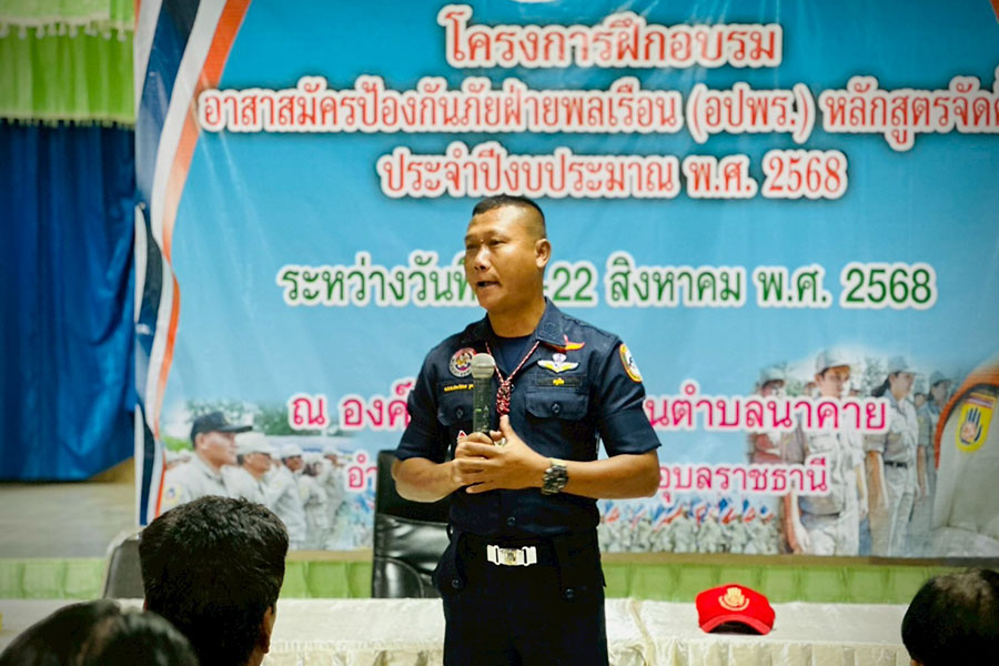 วันอังคาร, 26 สิงหาคม 2568 00:00เมื่อวันที่ 18 - 22 สิงหาคม 2568 นางสาวราตรี บุญชิต นายกองค์การบริหารส่วนตำบลนาคาย เป็นประธานในพิธีเปิดโครงการฝึกอบรมอาสาสมัครป้องกันภัยฝ่ายพลเรือน (อปพร.)หลักสูตรจัดตั้ง ปีงบประมาณ2568 เพื่อให้มีอัตรากำลังสมาชิก อาสาสมัครป้องกันภัยฝ่ายพลเรือน (อปพร.) อย่างเพียงพอ ในการป้องกันและบรรเทาสาธารณภัยประจำศูนย์ อปพร.องค์การบริหารส่วนตำบลนาคาย