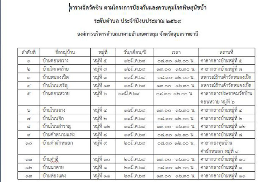 องค์การบริหารส่วนตำบลนาคาย จัดกิจกรรมโครงการป้องกันและควบคุมโรคพิษสุนัขบ้า ระดับตำบล ประจำปีงบประมาณ 2569