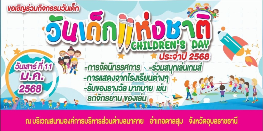 ขอเชิญร่วมกิจกรรมเนื่องในวันเด็กแห่งชาติ ประจำปีงบประมาณ2568 องค์การบริหารส่วนตำบลนาคาย